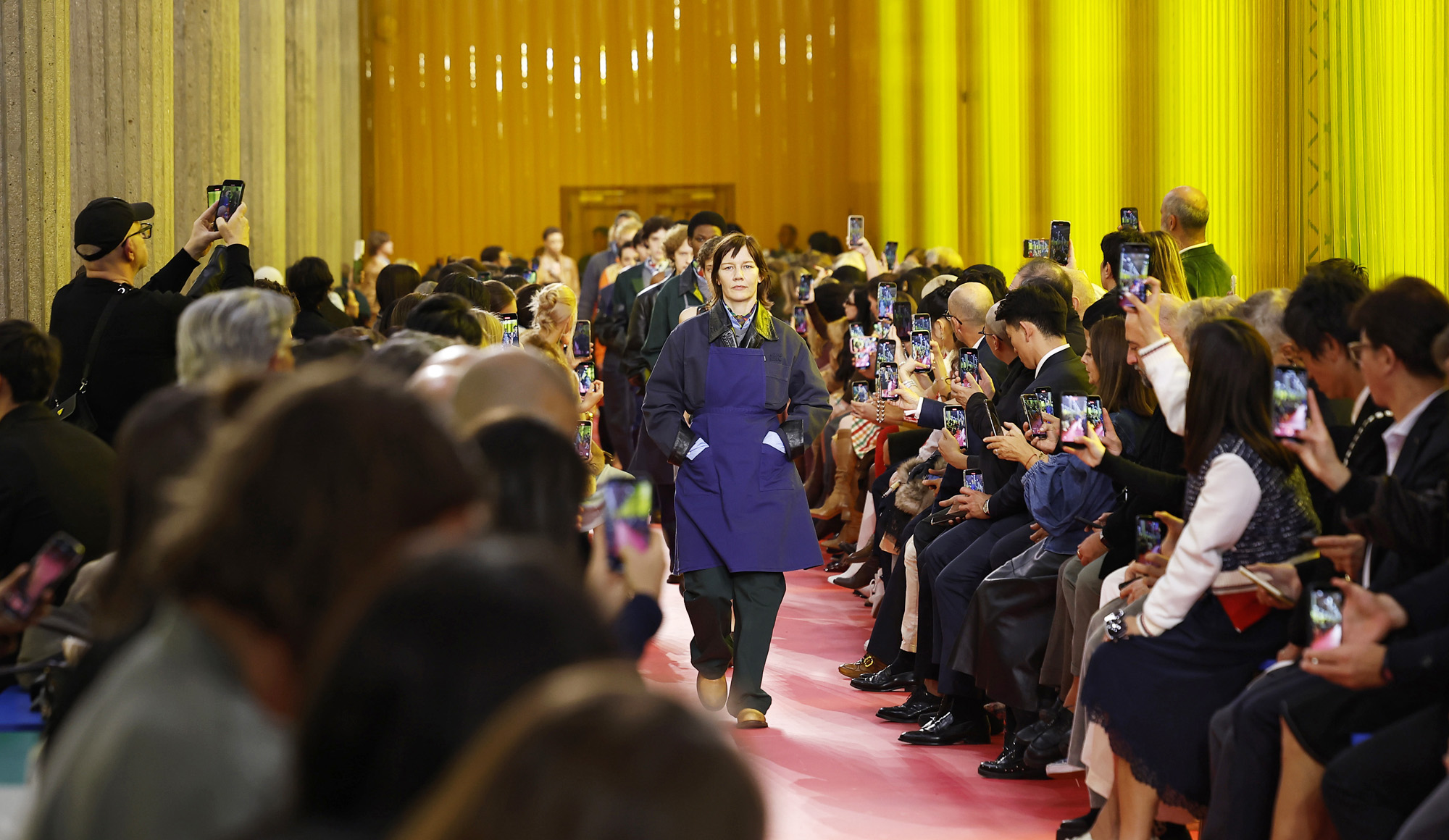 Titled “AT WORK,” the collection reexamines the dignity of labor through the lens of women’s work and pride. Aprons serve as a central motif, blending diverse roles and attributes into a single garment. The brand’s intellectual, philosophical approach elevates work into a form of beauty.