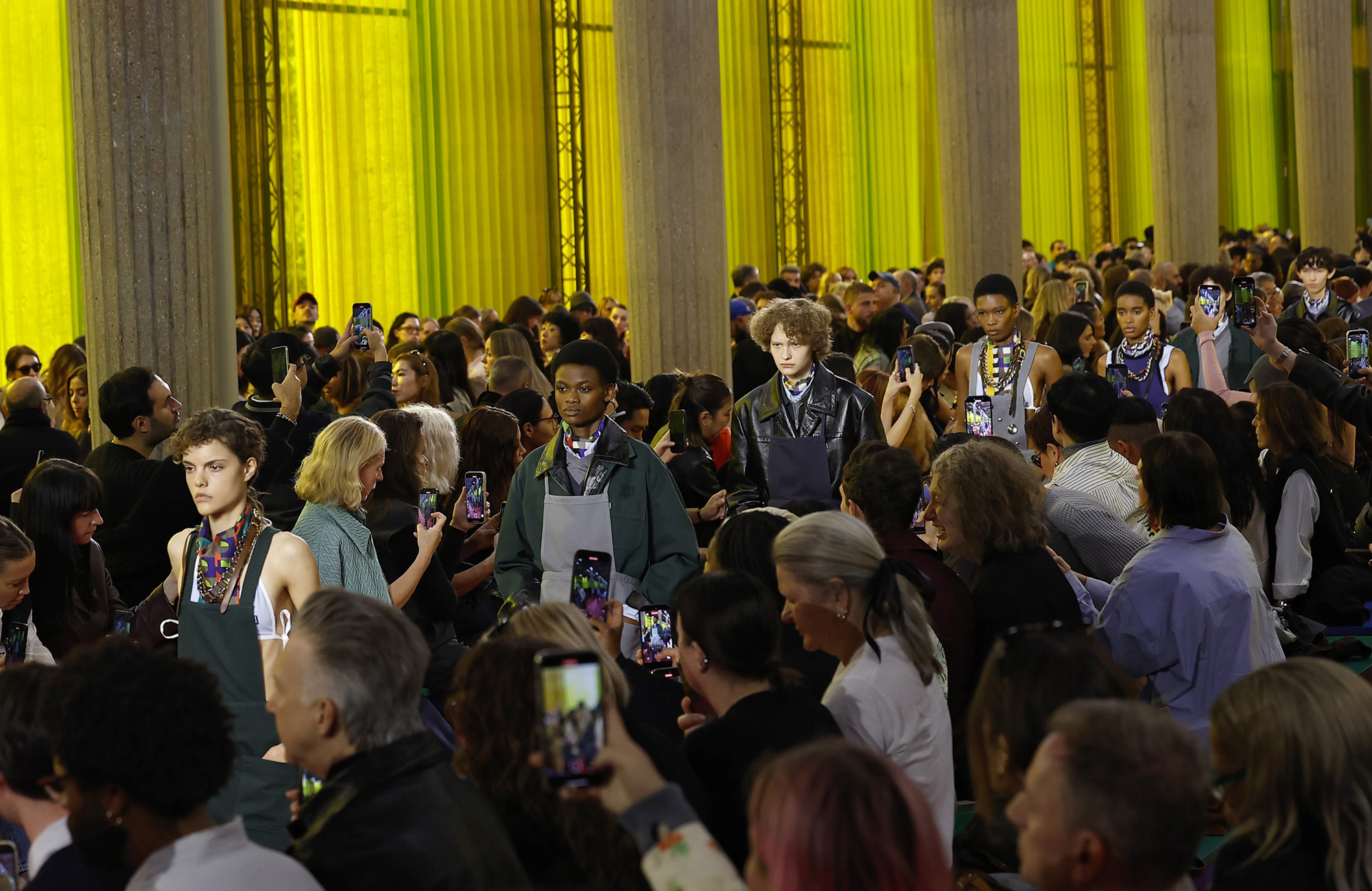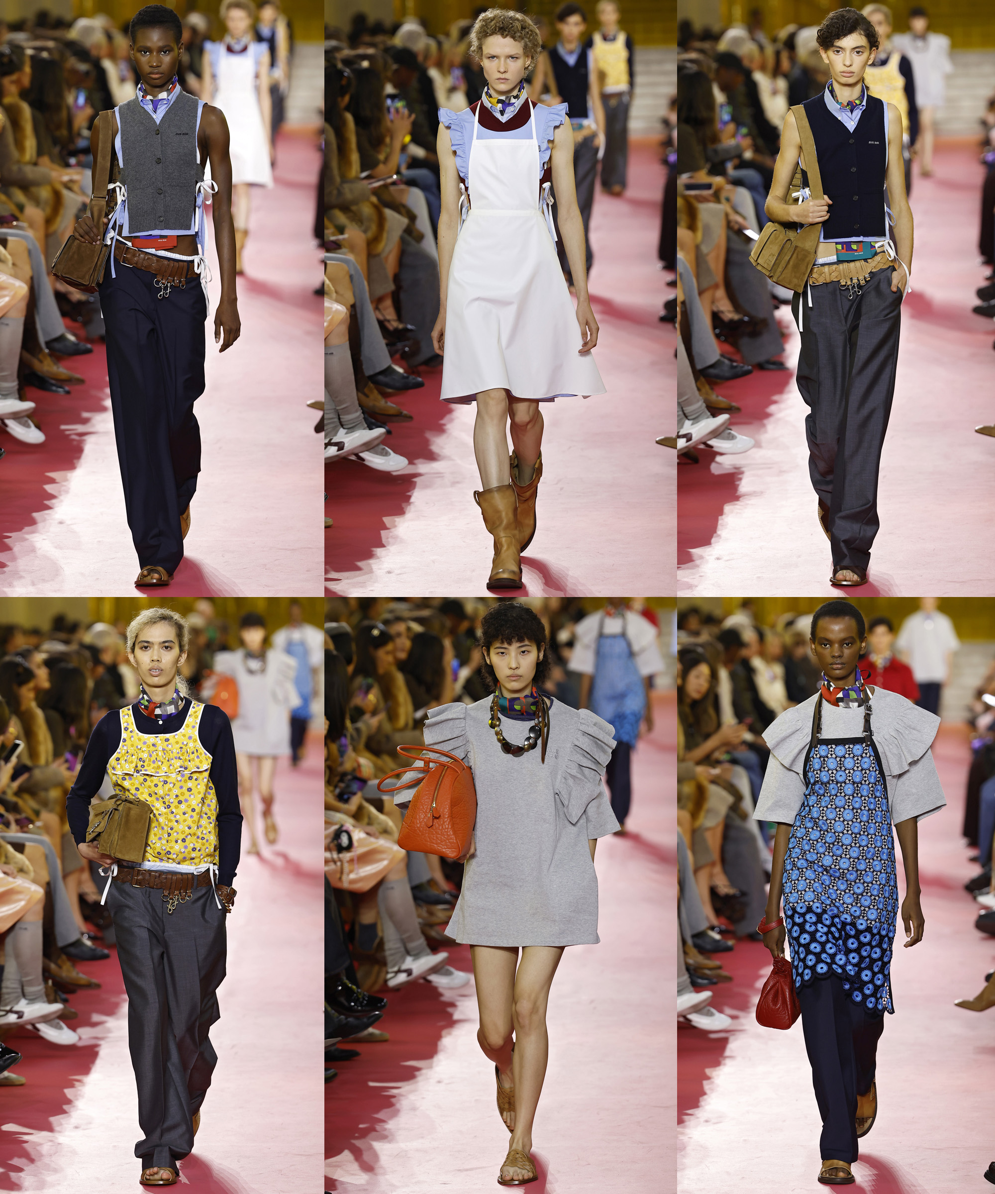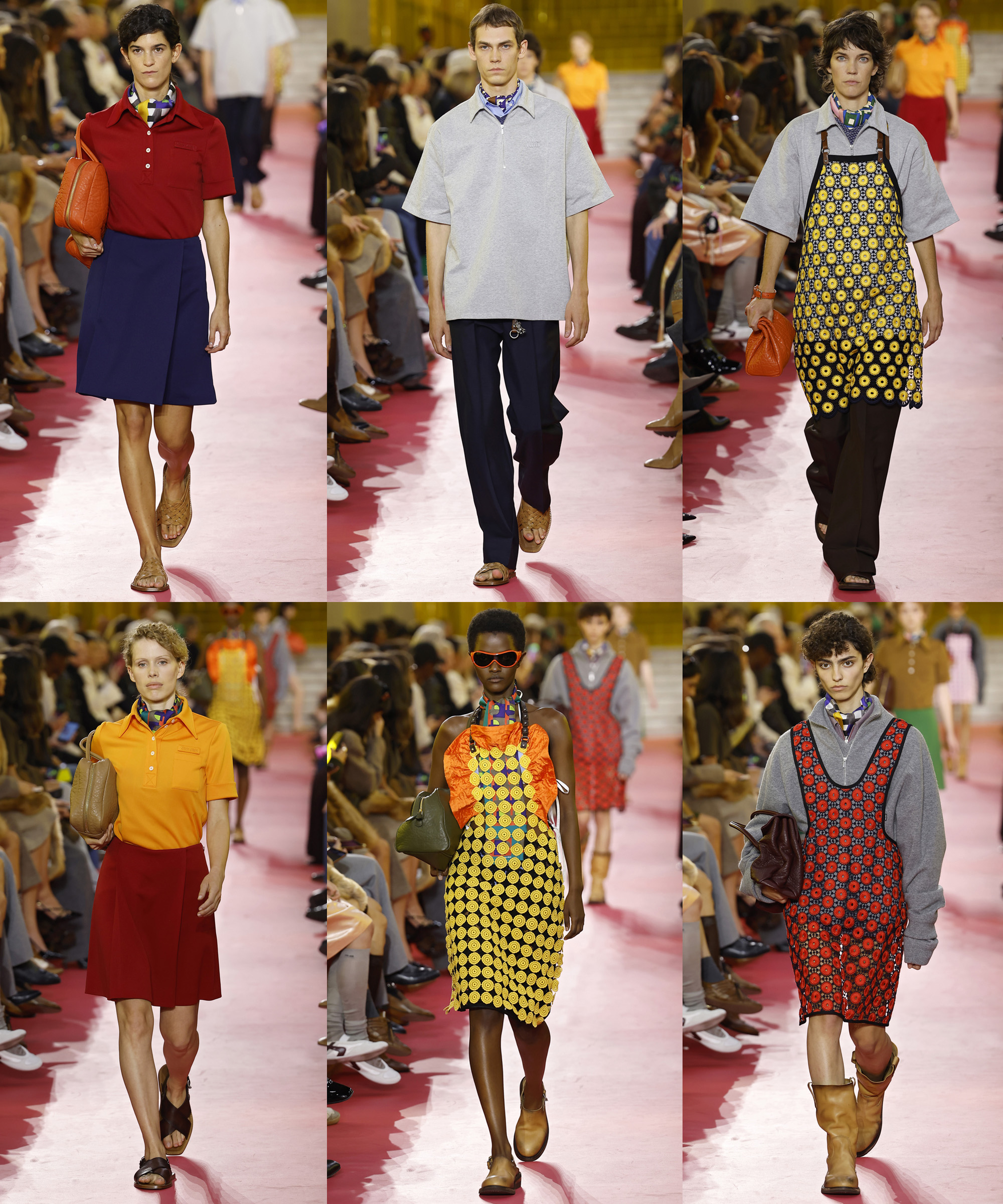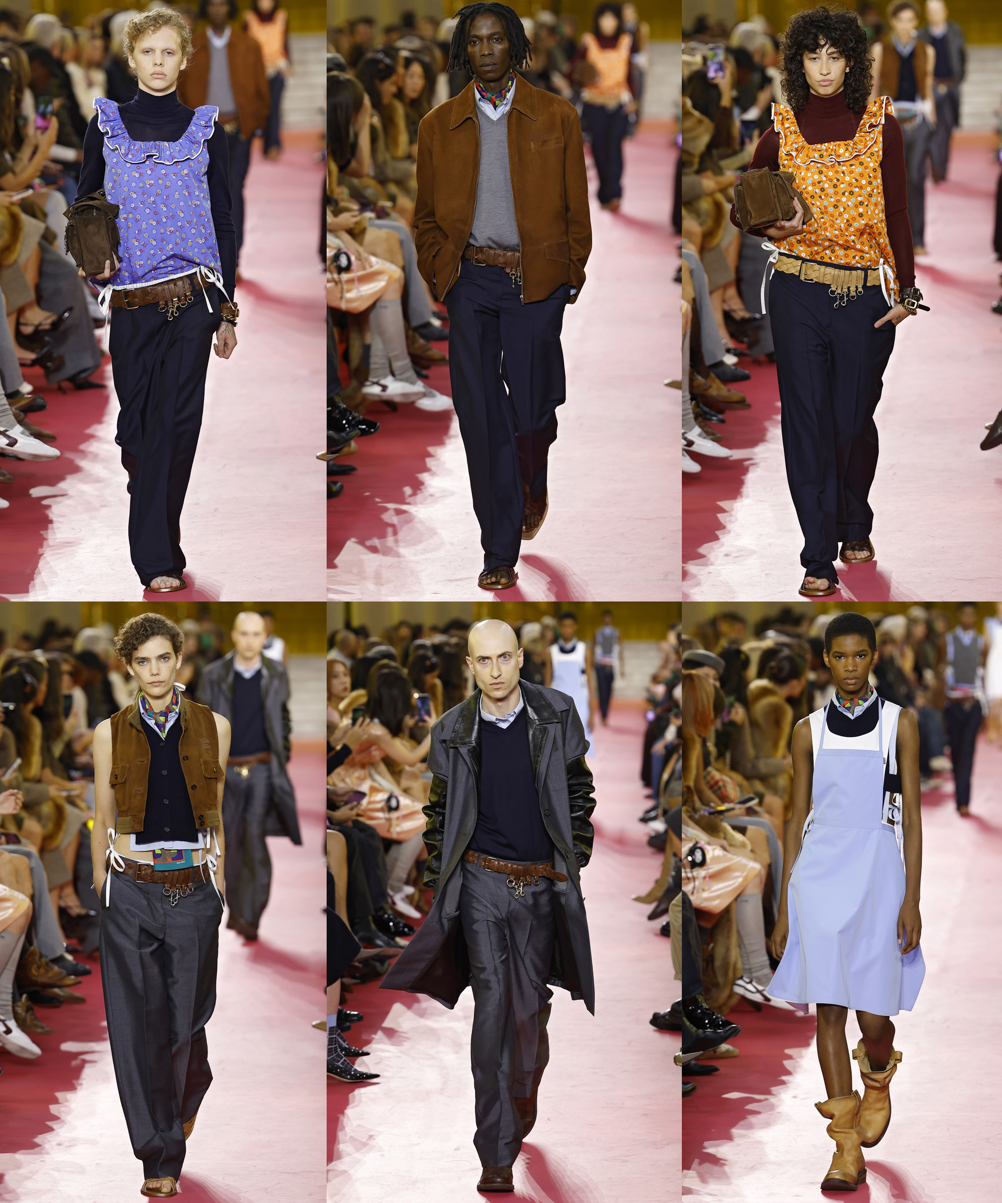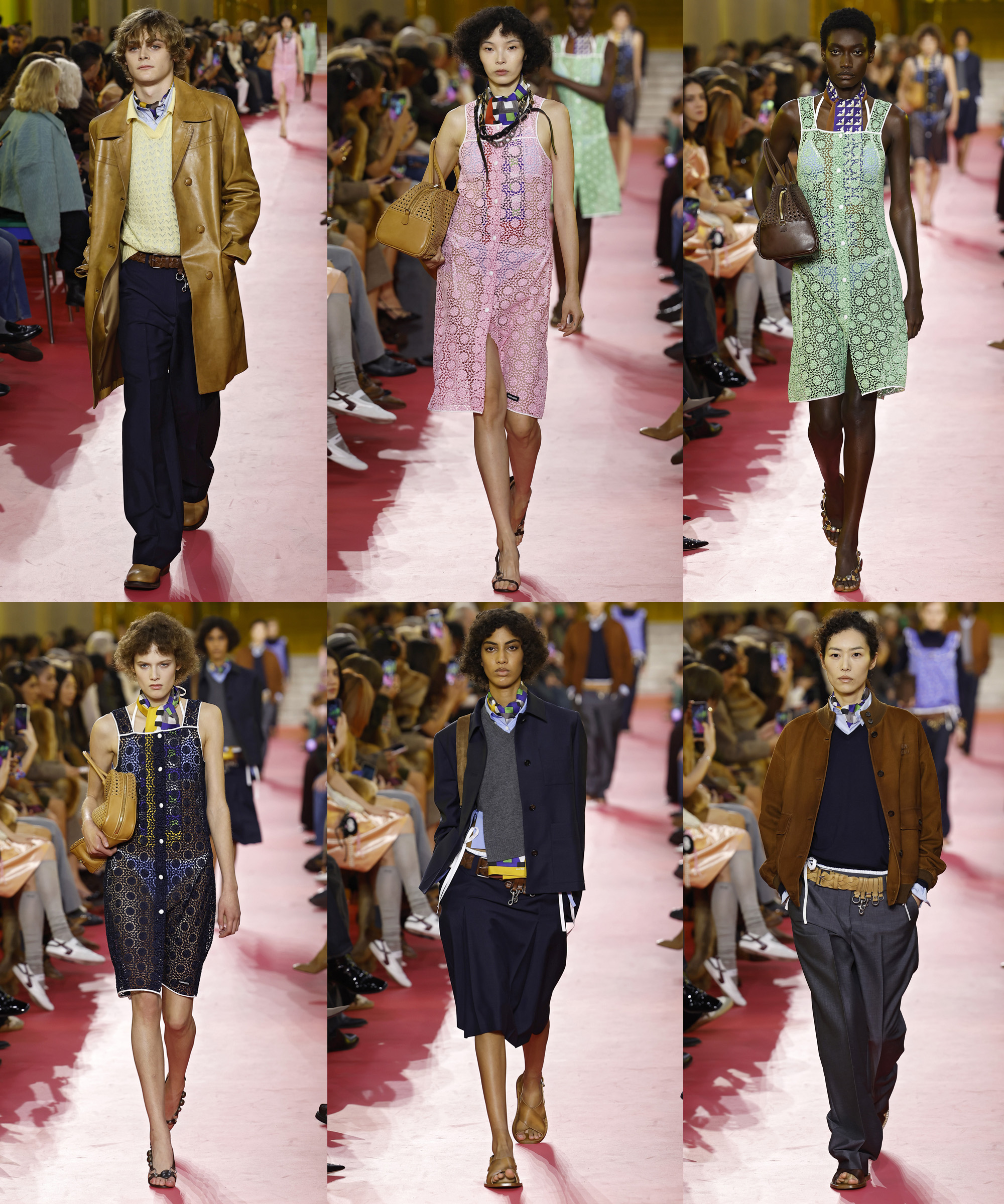 Titled “AT WORK,” the collection reexamines the dignity of labor through the lens of women’s work and pride. Aprons serve as a central motif, blending diverse roles and attributes into a single garment. The brand’s intellectual, philosophical approach elevates work into a form of beauty.